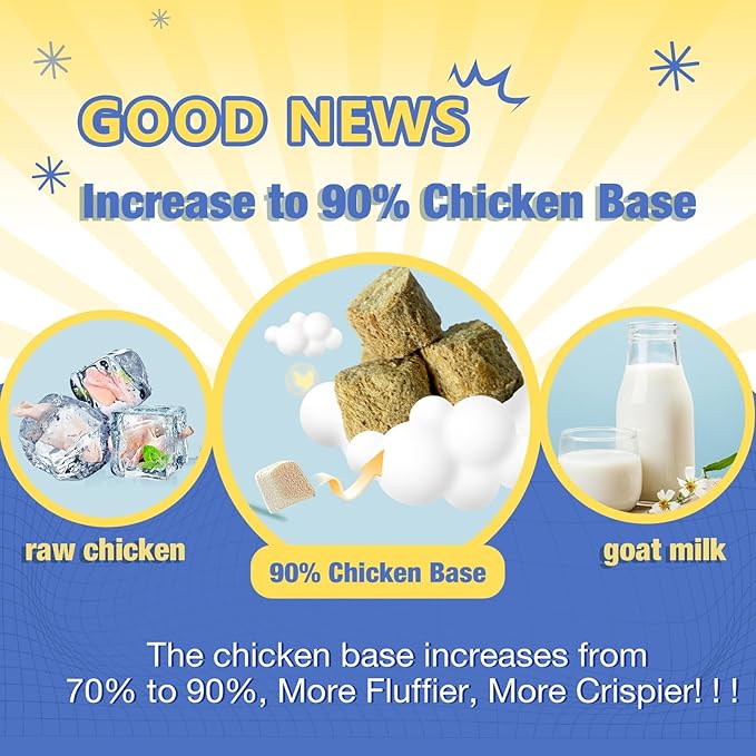 • FREEZE-DIRED CHEWS: In some dog vitamins and supplements, these vitamins and minerals are degraded in preparation and storage, we have adopted freeze-dried to preserve the original nutritional value to the greatest extent, which is where we are superior to other brands. We add raw chicken and goat milk to provide the best quality ingredients and taste. TIPS: Due to freeze-dried chews are crunchy. If is a young dog or an old dog, it is recommended that you soak the chew in water for two minutes.