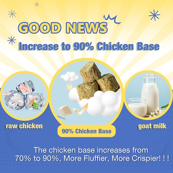 • FREEZE-DIRED CHEWS: In some dog vitamins and supplements, these vitamins and minerals are degraded in preparation and storage, we have adopted freeze-dried to preserve the original nutritional value to the greatest extent, which is where we are superior to other brands. We add raw chicken and goat milk to provide the best quality ingredients and taste. TIPS: Due to freeze-dried chews are crunchy. If is a young dog or an old dog, it is recommended that you soak the chew in water for two minutes.