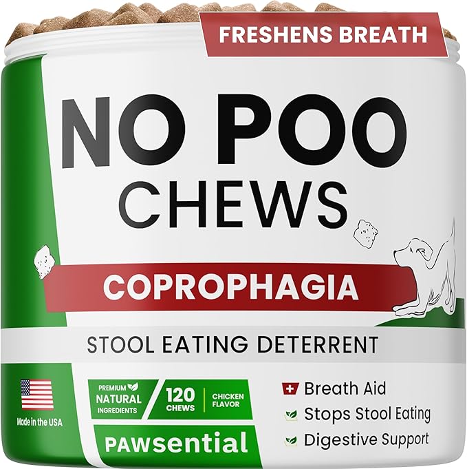 NO Poo Chews for Dogs - Prevent Dog Poop Eating - Coprophagia Treatment - Stool Eating Deterrent - Digestive Health + Breath Aid/Probiotics & Enzymes - Made in USA - 120 Treats