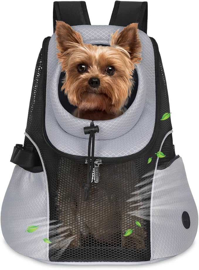 WOYYHO Pet Dog Carrier Backpack Small Dog Front Backpack Ventilated Mesh Dog Travel Back Pack with Safety Belt for Travel Hiking Cycling Outdoor Use (S (2-4.5 lbs), Black)