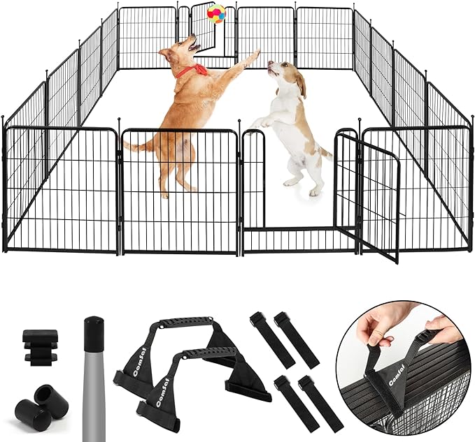 ComSaf Dog Playpen Outdoor, 32" Height 16 Panels Metal Dog Fence with Two Easy-Carry Straps,Playpen for Large/Medium/Small Dogs, Portable Pet Puppy Playpen for Outdoor, Indoor, RV, Camping, Yard