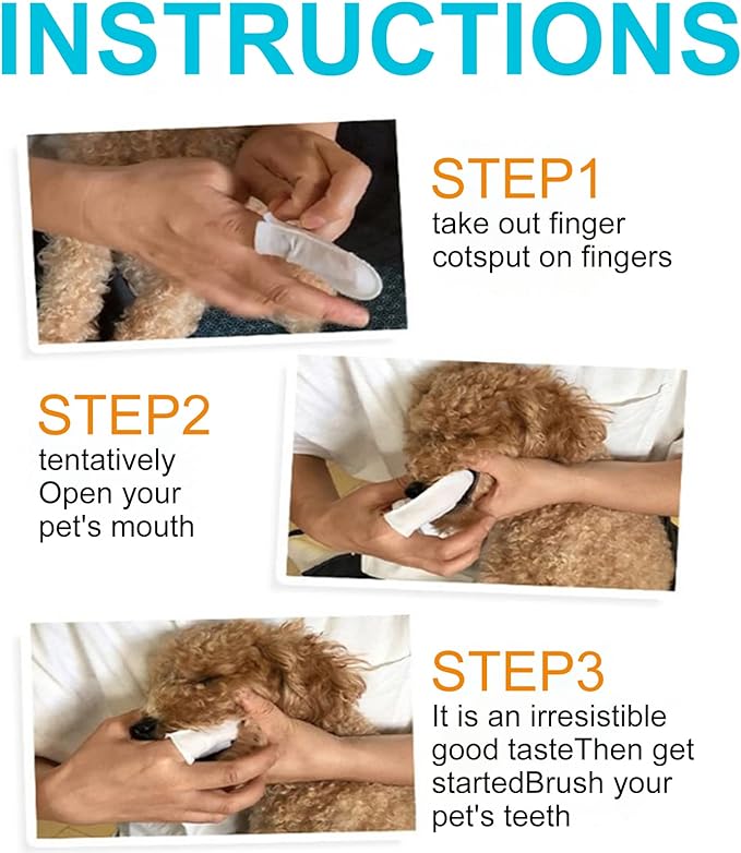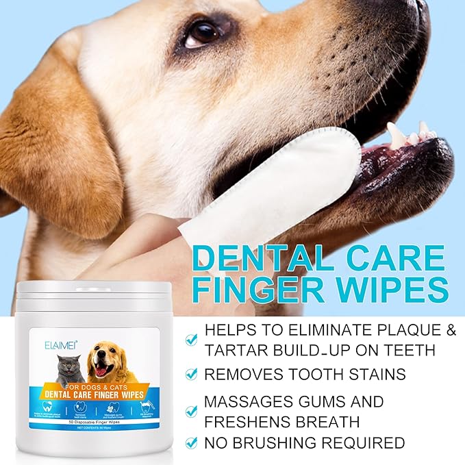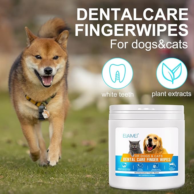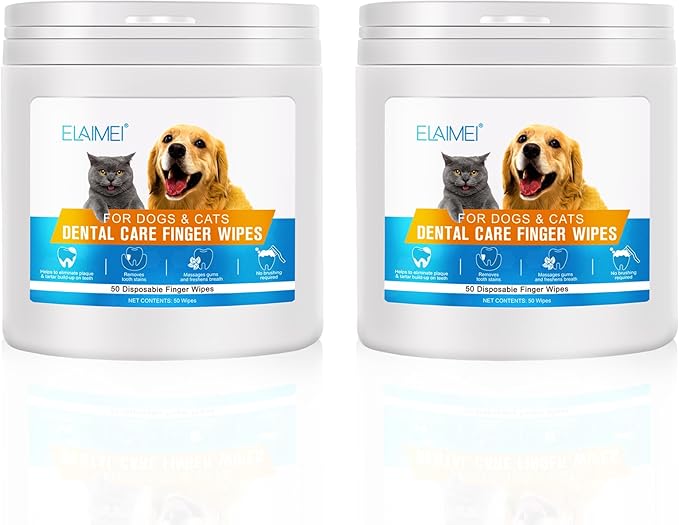 Teeth Cleaning Finger Wipes for Dogs, Dog Dental Care Wipes for Cats & Dogs, Pet Oral Cleansing Presoaked Teeth Wipes - No Brushing Fingers Wet Wipes for Freshen Breath, Reduce Plaque & Tartar - 2Pack