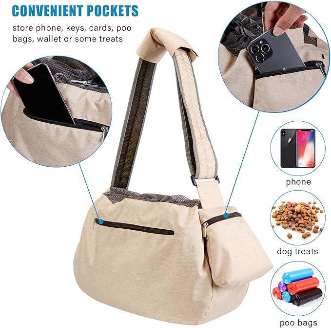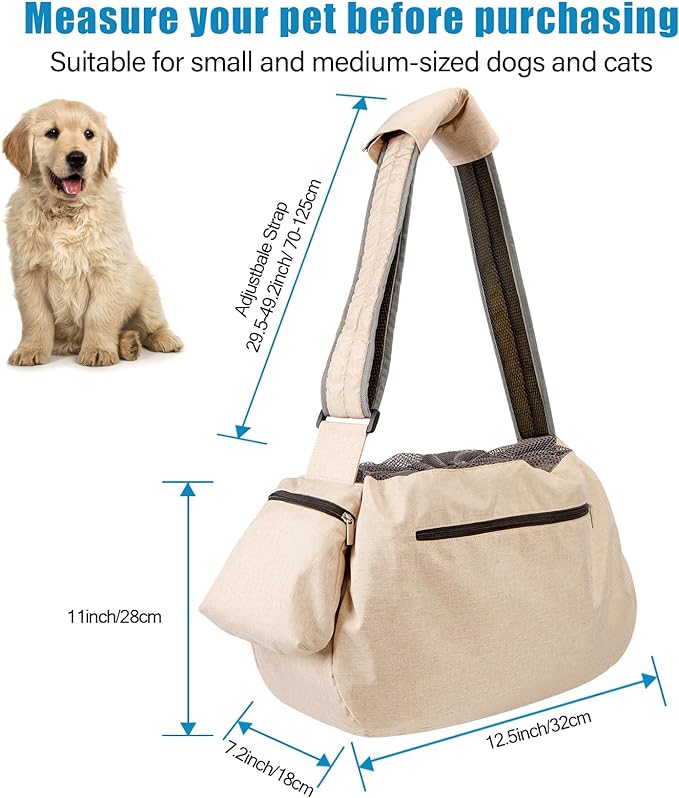 Ownpets Pet Sling Carrier, Fits 15 to 20lbs Extra-Large Dog/Cat Sling Carrier Reversible and Hands-Free Dog Bag with Adjustable Strap and Pocket Shoulder Pad, Beige