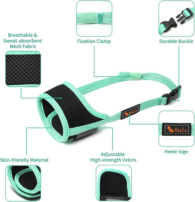 HEELE Dog Muzzle, Soft Mesh Breathable Muzzle with Adjustable Straps for Small Medium Large Dogs, Prevent Biting, Licking and Chewing, Allow Drinking Panting Green Medium