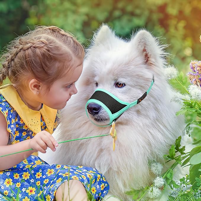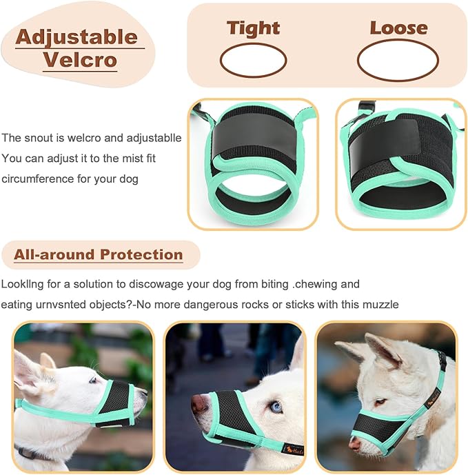 • Soft Durable Mesh Dog Muzzle: The humane design dog muzzle for Small Medium Large Dogs. Exceptionally resistant to abrasion, puncture and tear. Since it is a soft muzzle, it isn't appropriate for bite-risk dogs but can be great for public transport must wear a muzzle. In addition, it is very lightweight and highly packable. Perfect for dog walks, vet visits, grooming, making friends and more.