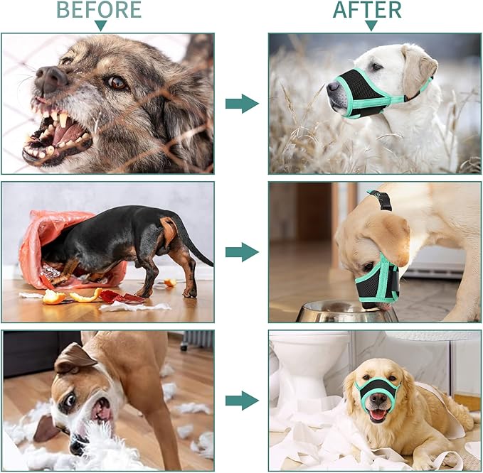 • Soft Durable Mesh Dog Muzzle: The humane design dog muzzle for Small Medium Large Dogs. Exceptionally resistant to abrasion, puncture and tear. Since it is a soft muzzle, it isn't appropriate for bite-risk dogs but can be great for public transport must wear a muzzle. In addition, it is very lightweight and highly packable. Perfect for dog walks, vet visits, grooming, making friends and more.