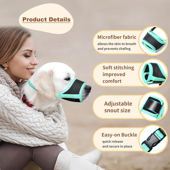HEELE Dog Muzzle, Soft Mesh Breathable Muzzle with Adjustable Straps for Small Medium Large Dogs, Prevent Biting, Licking and Chewing, Allow Drinking Panting Green Large