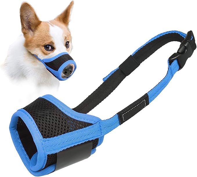 Dog Muzzle Anti Biting Barking and Chewing with Comfortable Mesh Soft Fabric and Adjustable Strap, Suitable for Small, Medium and Large Dogs(Blue Trim,M)