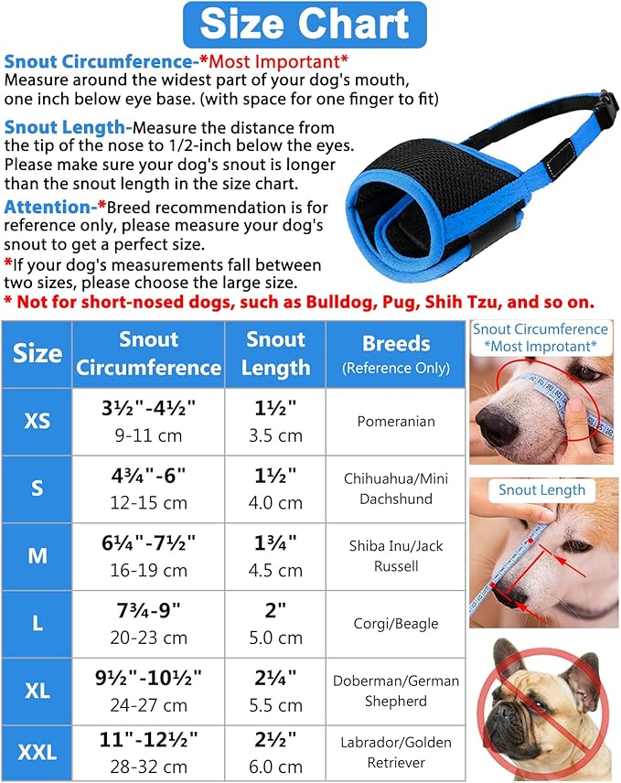 • Effective Dog Muzzles-This puppy muzzle is a helpful way to limit dogs biting, chewing, barking, nipping, and other bad habits. This dog muzzle for barking is ideal for Training Vet visits, Grooming, Walking, Traveling, and Nail Trimming.