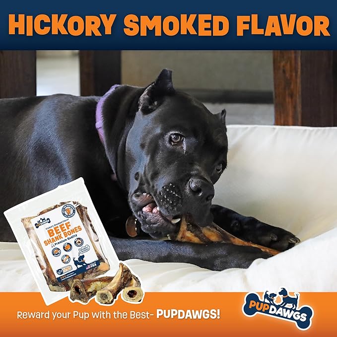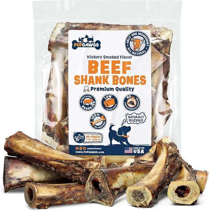 Dog Bones for Aggressive Chewers | 7-8" Hickory Smoked Flavor Beef Shank Bones | Dog Bones for Medium Dog | All Natural Dog Bone Treats Made in The USA - Individually Wrapped (10 Piece Pack)