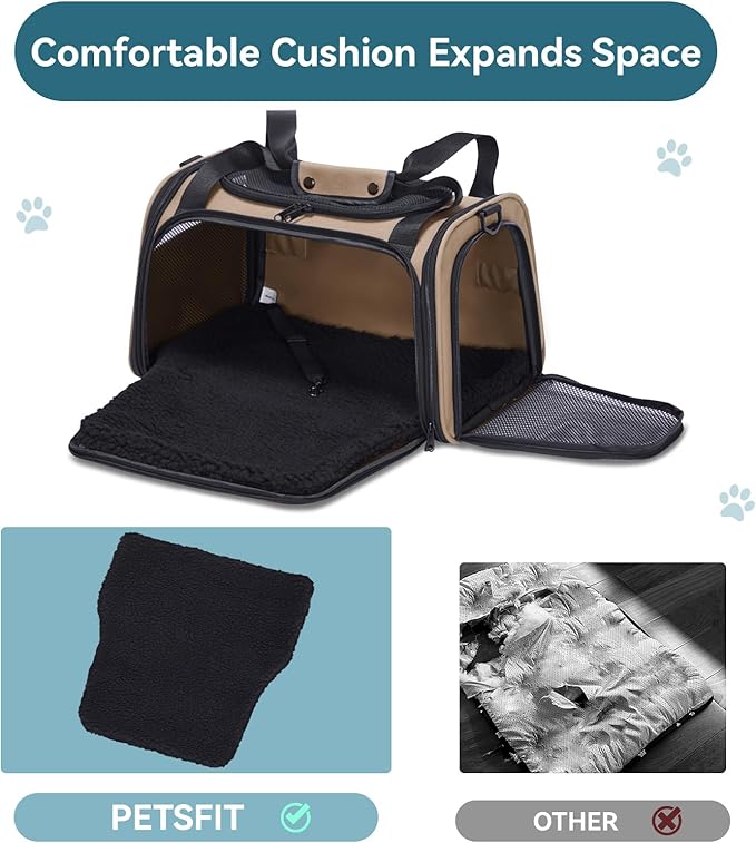 PETSFIT Pet Carrier for Cat, Dog Carrier for Small Dogs, Soft Cat Carrier Bag with Cozy Extendable Mat for Pets Under 25 Lbs (Large, Khaki)