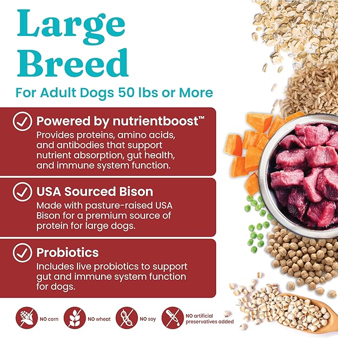 • Real Meat & High Protein for Pets – Contains natural, lean, and protein packed bison as the first ingredient to help maintain muscle health to keep your pup feeling their healthy best.