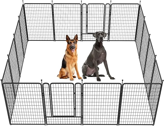 • đŸ¶ă€Supper easy to assemble】It won’t take you more than 5 minutes to assemble these portable dog fences as well as pack them away due to the rod-connected design. Meanwhile, panels can be added or removed freely to give you a fully flexible area and arrange the dog pen in any shape you need.