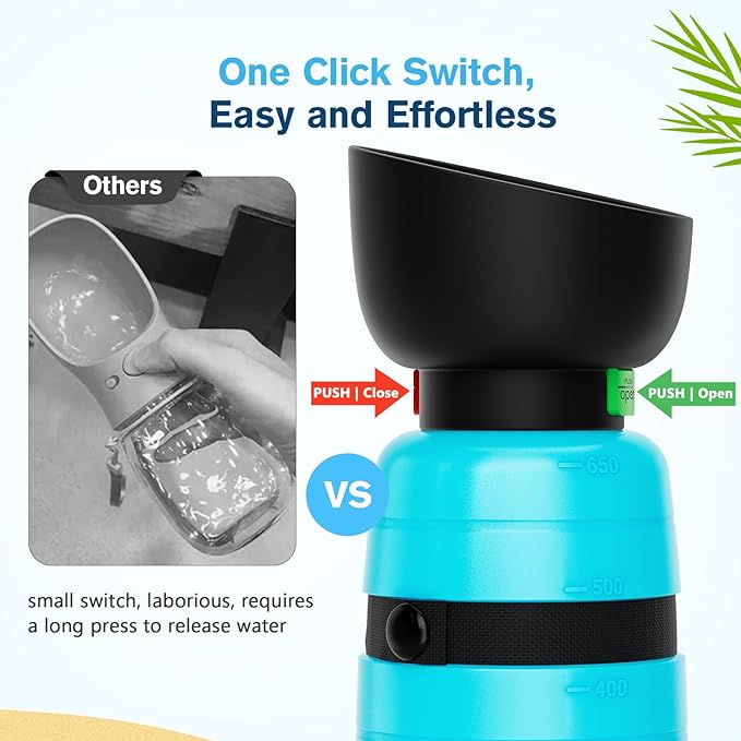 • 🐾【 EASY TO OPERATE, LEAK-PROOF 】: The 1 button unlock function and 1 hand design allow water to flow easily by pressing the dog water bottle dispenser. The upgraded locking mechanism ensures it doesn't leak, so you don't have to worry about any spills.