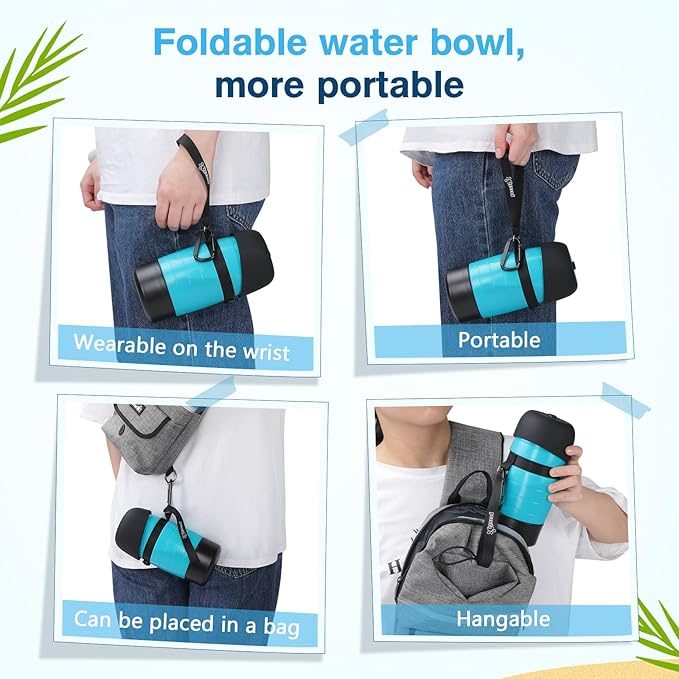 • 🐾【 LIGHTWEIGHT & PORTABLE 】: The leakproof water bottle for dogs fits in most backpack bottle pockets and won't wet your travel bag. Equipped with a carry strap for easy transport. It also comes with an extra carabiner that can be attached anywhere you need it.