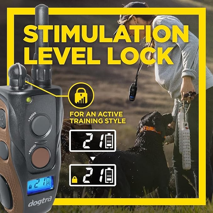 • BOOST & LOCK FEATURES: Enhance your training experience with the superior Boost button. The constant correction with a customizable Boost button allows for instant level increases to immediately recall you dog. Go from training mode to obedience mode easily by setting your own custom Boost to jump to your enhanced training level seamlessly. The newly introduced Safety Level Lock prevents unwanted or accidental level changes.