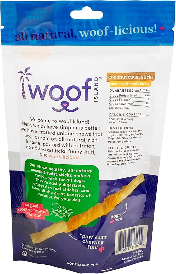 • ALL NATURAL DOG CHEWS: Give your furry friend a delicious and healthy treat with Woof Island Coconut Dog Twist Bones - made with all-natural coconut for a safe and tasty alternative to traditional chews.
