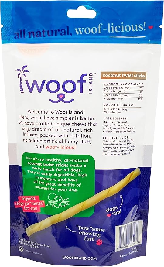 • DELICIOUS AND NUTRITIOUS: Not only do dogs love the taste of Woof Island coconut twists, but these one-of-a-kind pet chews are packed with essential nutrients, including vitamins, minerals, and fiber, to support your dog's overall health and wellbeing.