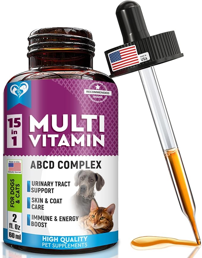 • ✅ FOR ALL BREEDS AND SIZES: Formulated for daily use, this liquid multivitamin is versatile, serving pets of all ages and sizes - from kittens and puppies to medium and large breeds. It boosts immunity, urinary tract health, digestive health, liver function control, eye vision, and more. With a rich blend of vitamins and natural extracts, it's an all-in-one solution to keep your small pet lively and healthy. The sample drops seamlessly into any pet care, happy life for your pets.