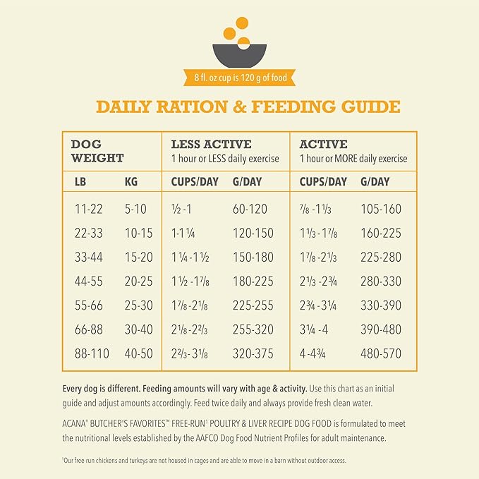 • One (1) 17 lb bag of ACANA Butcher's Favorites Free-Run Poultry* & Liver Recipe Dry Dog Food