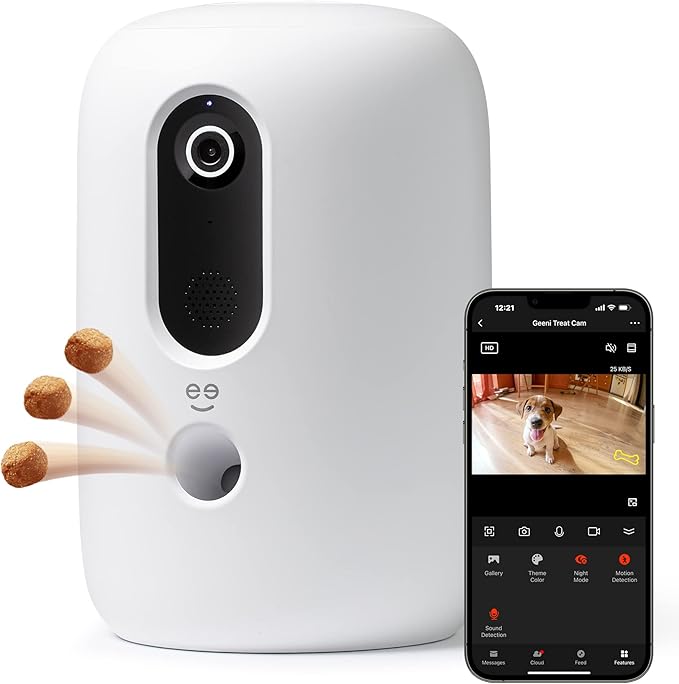 Geeni PetConnect Treat + Cam, Smart Treat Dispenser with Smart Home Pet Camera, Timer & Voice, Automatic Dog or Cat Feeder, Compatible with Alexa & Google