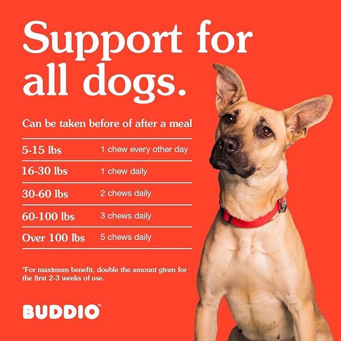 • SUITABLE FOR DOGS OF ALL SIZES & AGES - Whether you have a small puppy or a large senior dog, Buddio's Hip & Joint supplement is tailored to meet the needs of dogs at every stage of life.