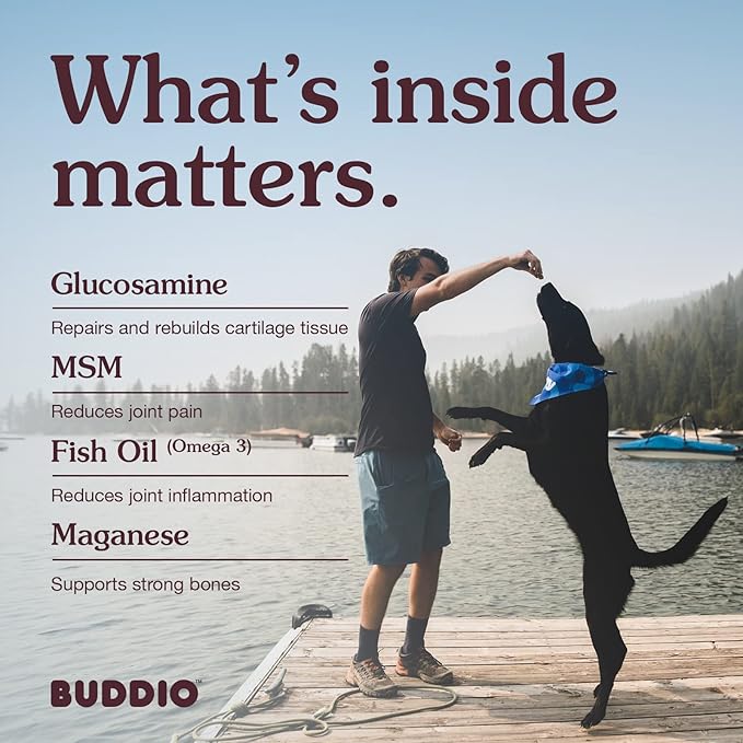 • HIGH-POTENCY ACTIVE INGREDIENTS - Each Buddio soft chew contains Glucosamine, Fish Oil, Vitamin E, and Manganese, all carefully selected for their proven benefits in supporting canine joint health and mobility.