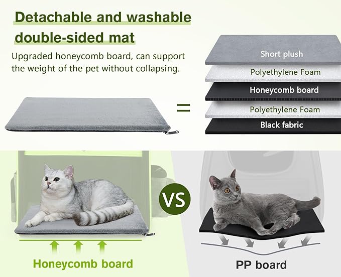 • 🐾【EXCELLENT VENTILATION & VISIBILITY】: A 3-panel acrylic board design can provide excellent light transmission and visibility. 4 ventilation holes are located on both sides and at the top with a breathable mesh, ensuring airflow and no sultry heat. Made of high-quality 300D Oxford cloth and nylon mesh fabric that is waterproof, anti-scratch, non-toxic, and non-irritating, lets your pet breathe freely and relax.