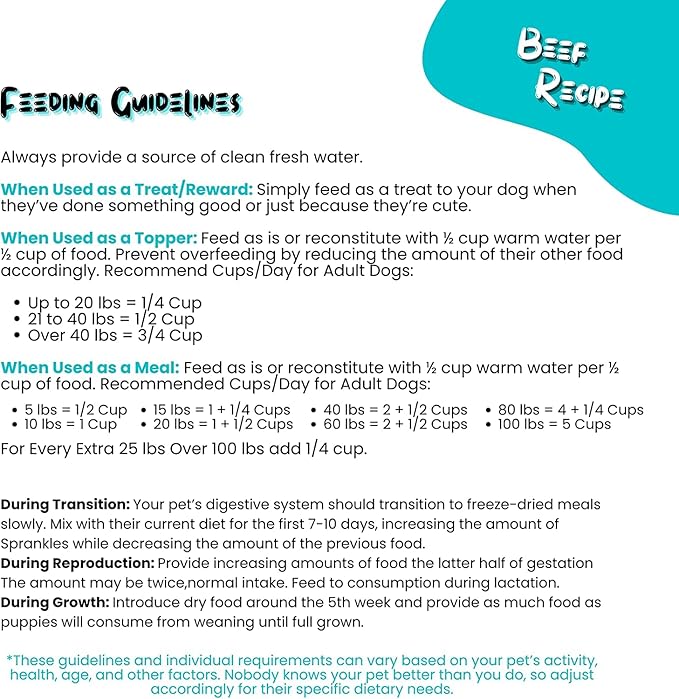• Complete Meal, Toppers or Treat: A scoop of our Sprankles Dog Food Toppers offers all the vitamins and minerals your dog needs for a healthy diet, perfect for serving as a meal, a mixer, or a scrumptious freeze dried dog treats.