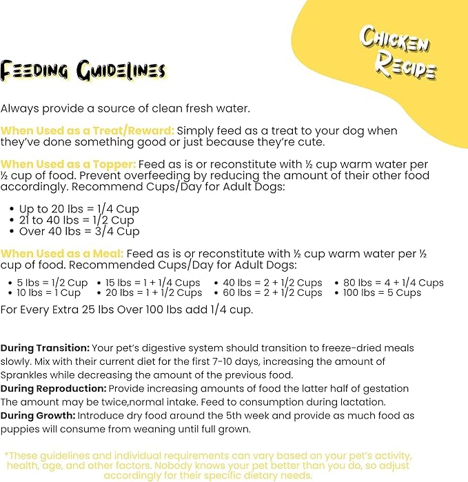 • Complete Meal, Toppers or Treat: A scoop of our Sprankles Dog Food Toppers offers all the vitamins and minerals your dog needs for a healthy diet, perfect for serving as a meal, a mixer, or a scrumptious freeze dried dog treats.