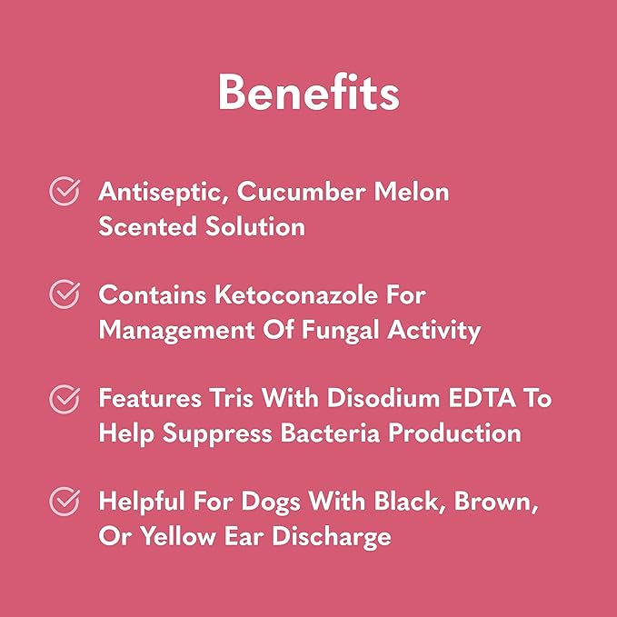 • USE FOR CLEANSING & FLUSHING EARS: Topical, cucumber melon scented, cleaning solution for gentle cleansing and flushing of dog's ears. For dogs with black, brown, or yellow ear discharge