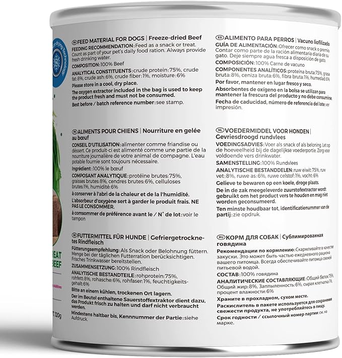 Freeze Dried Dog Treats - 100% Beef Grain Free - Natural balanced Single Ingredient Raw Dog Snacks - Dry Dog Food Topper 120g/4.23oz