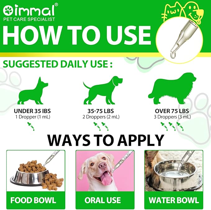 • ✅ For All Dog Breeds & Sizes - The dog health supplement is suitable for all breeds, ages and sizes dogs, the liquid quickly enters the circulation and has a supportive effect on the digestibility for every pet. Note: The dropper is glass and please do not feed the dogs directly.