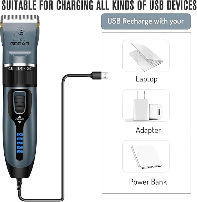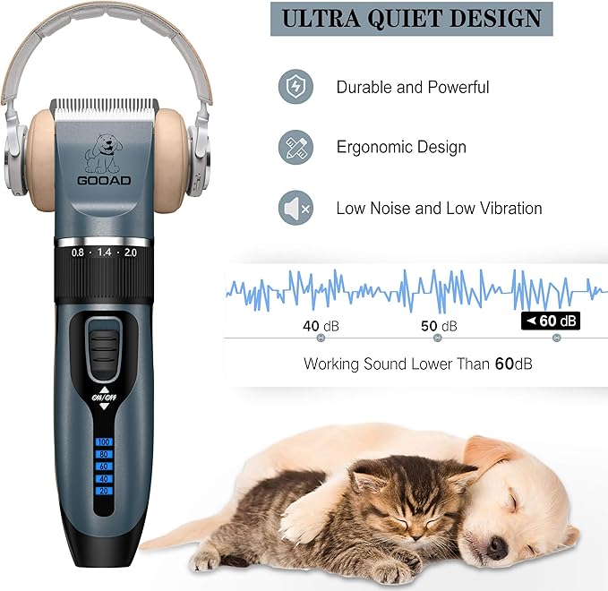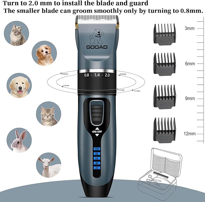 • 💎【Long Lasting Battery & LCD display】2200mA High Capacity Li-ion Battery, charging for 3 hours and can sustain use of 250 minutes.for reminding using and charging. Rechargeable design of this dog clipper, you don't have to buy replace batteries.
