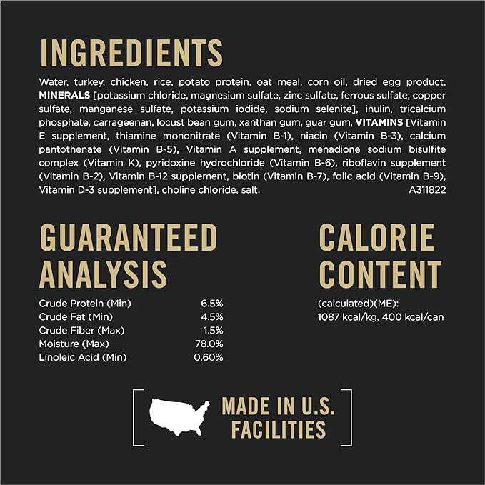 • Natural prebiotic fiber in this Purina Pro Plan wet food with oat meal nourishes specific intestinal bacteria for digestive health