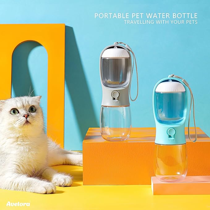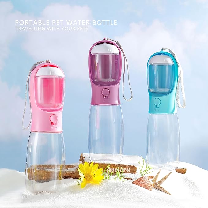 • 【Upgraded Bigger Capacity】:Avelora water bottle can hold max 19 ounces (550 ml) of water and 100 g food. It not only ensures dog drinking water easily but also cat, rabbit or other small pet to drinking water easily. You can put this bottle into your pocket, backpack or hanging on your hand with sling rope.