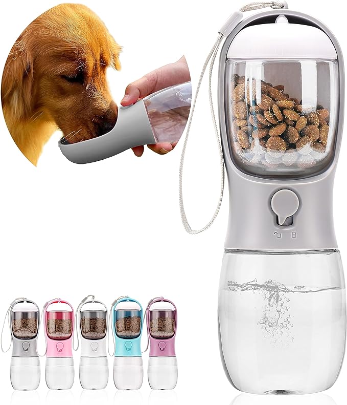 • 【2 In 1 Portable Design】:Pet water bottle is designed not only to hold water, but also to carry food.