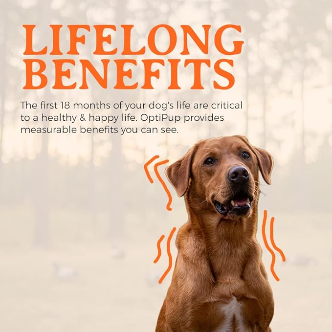 • LIFELONG BENEFITS – The first 18 months of your puppy's life are some of the most critical to ensuring their have the foundation to thrive throughout their life. OptiPup's healthy growth formula helps ensure they have all the nutrients they need to maximize their potential!