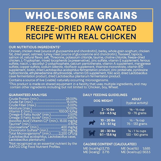 • Freeze dried dog food kibble is raw coated with chicken for a great taste your dog will love