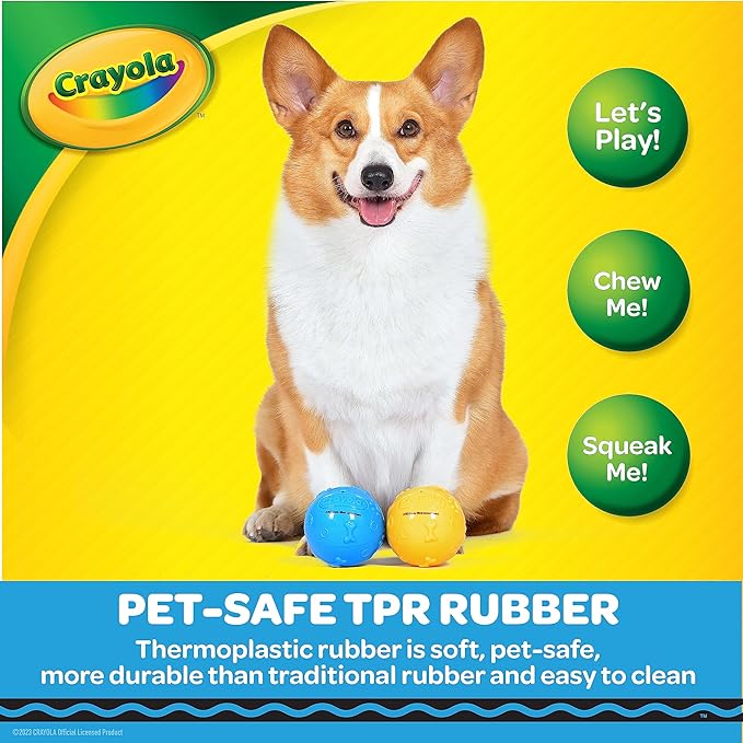 Crayola for Pets 2pk Balls in Pup-Visible Colors Dogs See Best, Embossed Texture for Easy Grip Fetch and Chew, TPR, Rubber Chew Toys for Dogs, Yellow + Blue Tennis Ball Style Dog Toys