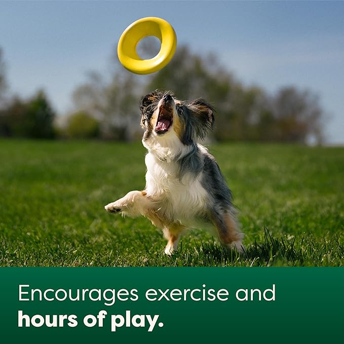 • HIGH VISIBILITY: Our flying disc toy is bright yellow, a color that's easily visible to dogs. Perfect for play on land or in water.