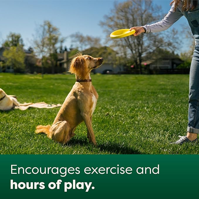 • HIGH VISIBILITY: Our flying disc toy is bright yellow, a color that's easily visible to dogs. Perfect for play on land or in water.