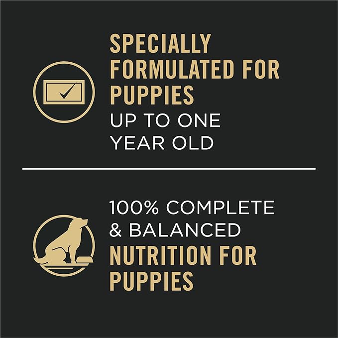• Purina Pro Plan puppy food specially formulated for puppies up to one year old, including high-quality protein for strong muscles