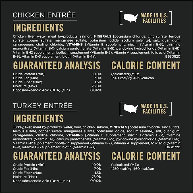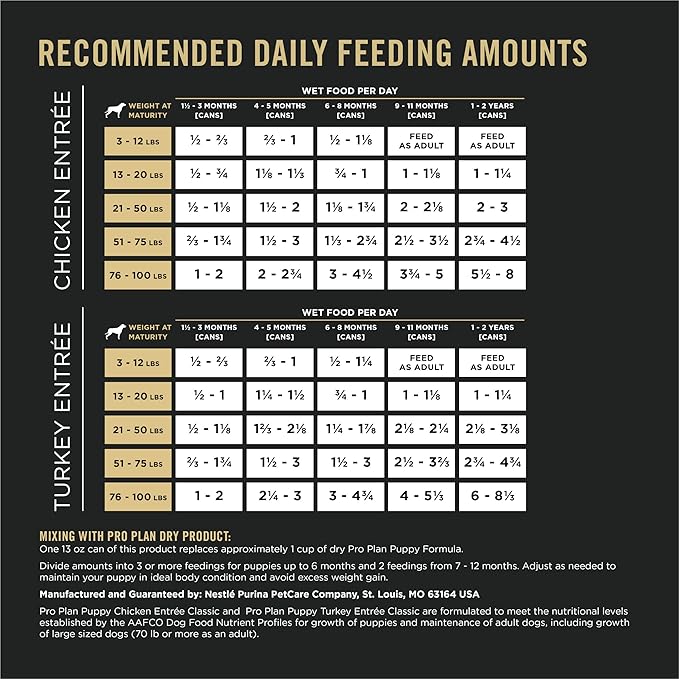 • Twelve (12) 13 oz. Cans - Purina Pro Plan Development Grain Free Chicken Entree and Grain Free Turkey Entree Wet Puppy Food Variety Pack