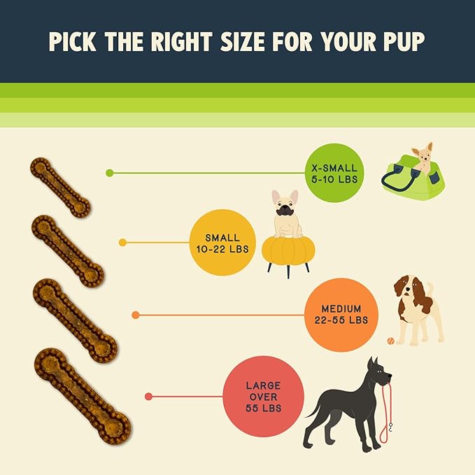 • FRESHENS BREATH – Our dental treats have no artificial colors, flavors, preservatives or gluten. It's flexible, nubby texture helps clean your pup’s teeth and gums to create fresh breath that lasts
