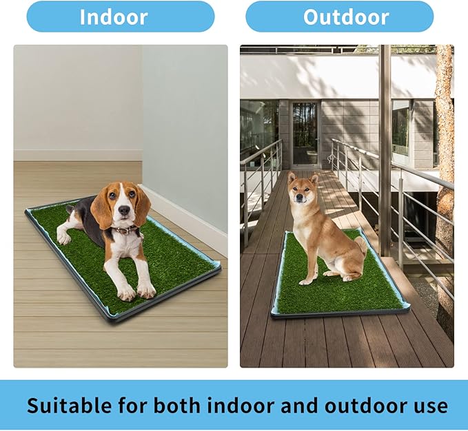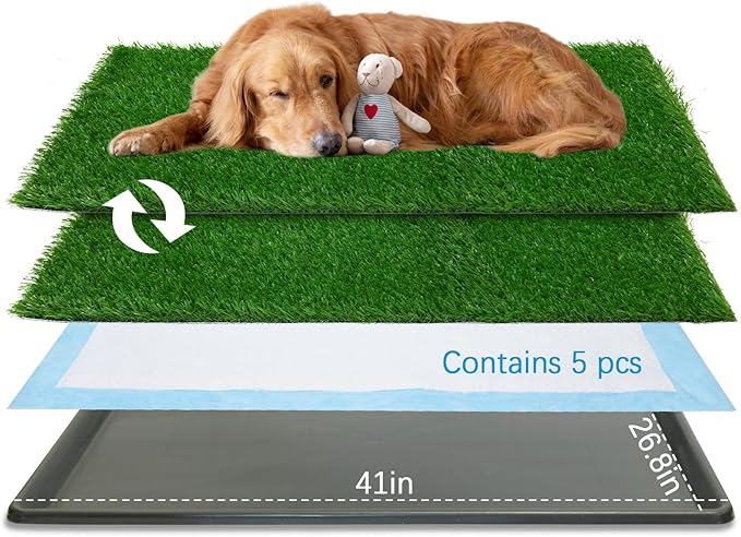 • ✅EXTRA LARGE PET LOO:The grass pee pads for dogs with tray large size is 41 inch X 26.8 inch makes it ideal for medium or large dogs.The turf grass for dog is designed for your pet’s ideal experience looks and feels just like real grass. Not only that, but your dog will love on their artificial grass pee pad while business , keeping their paws clean and staying safe and healthy all the while.