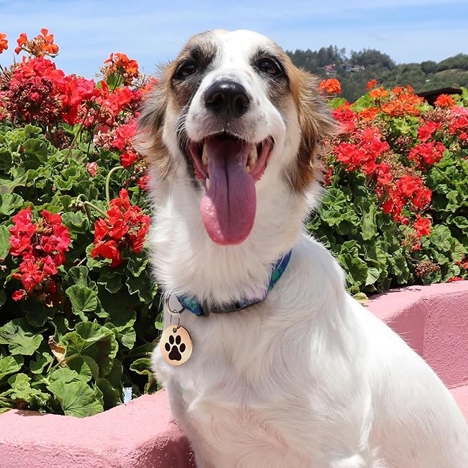 • 【Material & Size】The Personalized dog tags are made from high Quality Stainless steel, Professional Engraving, has strong colour, does not fade, ideal for long-term tagging, it will not discolor on your pet's fur. Size: 1.18 inch in Diameter, Weighs only 0.25 oz, lightweight and durable.