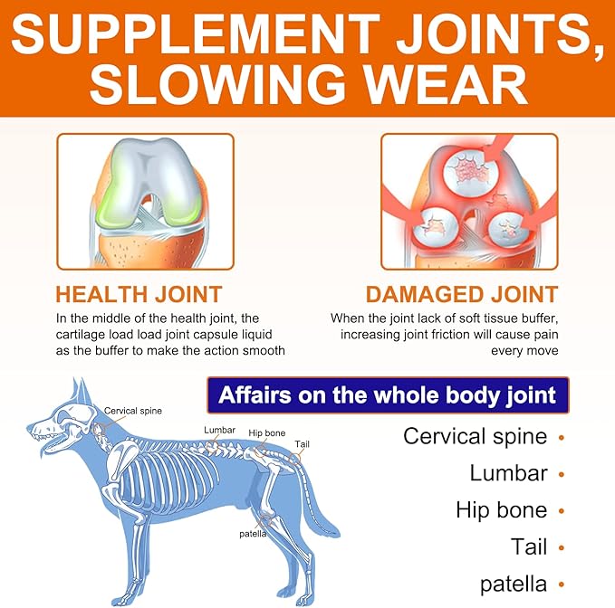 • Joint Support for Dogs: dog joint chews aid your pet feel comfortable while walking, running, or jumping. Whether it's a senior dog or a small puppy, treats help all ages & breeds stay playful & enjoy every move.