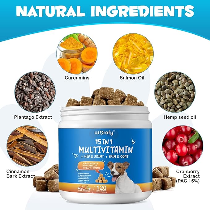 Dog 15-in-1 Multivitamin Chewable, Dog Vitamins & Supplements, Pet Joint Support Health - Immunity - Mobility - Gut - Skin, Dog Vitamins with Biotin, Cranberry, Glucosamine for Dogs (120 Chews)