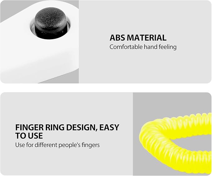 • FINGER RING DESIGN: Training clicker with finger ring design, easy to use, elastic material, use for different people's fingers.
